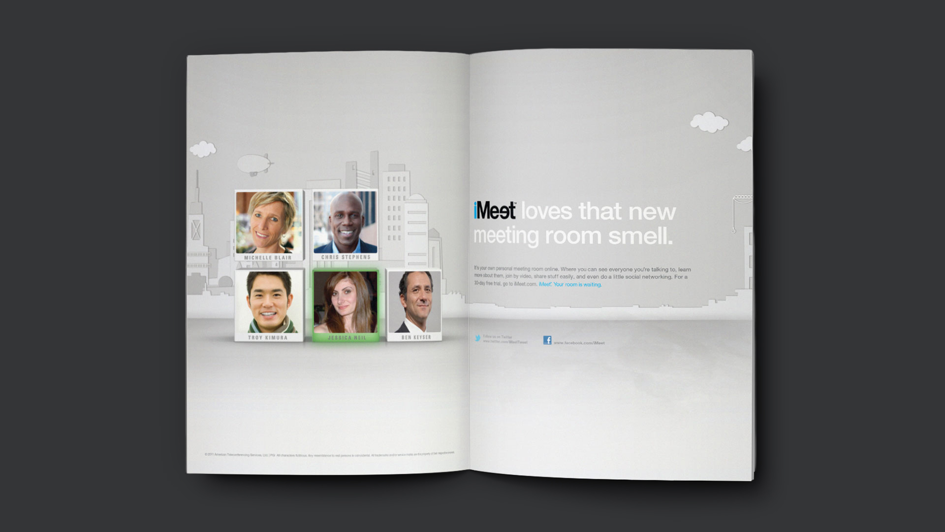 iMeet was born to kill lame web conferencing. With a visionary client, we designed and built the product from scratch. Then with the brand we created, we rolled out national TV, print, and online banners. The TV campaign envisions a few of the world's greatest meetings, as they might have taken place in an iMeet room. After a few years, iMeet reached over $100 million in revenue.
