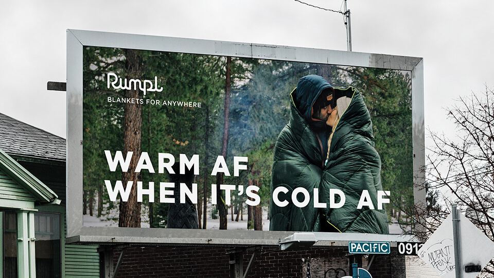 We rolled out Rumpl's first billboards in Portland, OR. Their hometown seemed like a perfect location for a launch. With that success in awareness and sales, advertising in other markets such as Denver and Salt lake City followed.